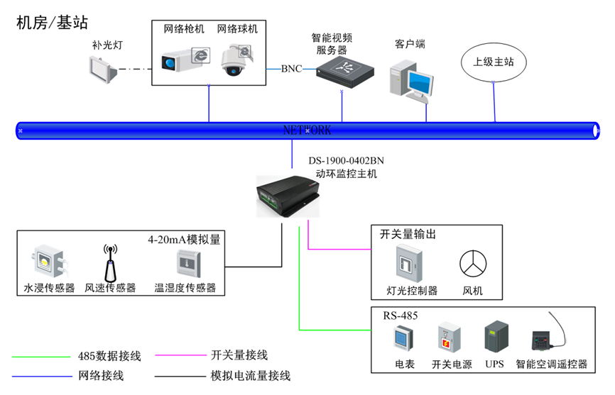 •支持RS-485接入外部設(shè)備,包括:UPS、電量表、開(kāi)關(guān)電源、有毒氣體探測(cè)器、空調(diào)控制器、溫濕度傳感器、變壓器溫顯表等;