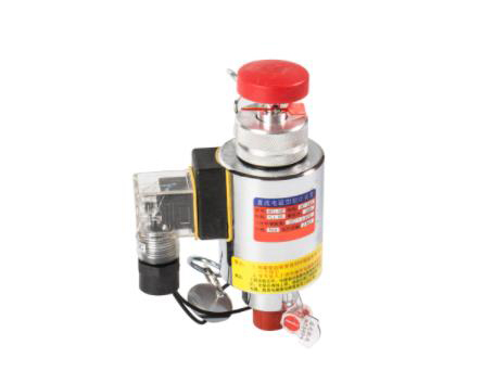 電磁驅(qū)動裝置安裝在容器閥上,電磁鐵動作時擊穿裝置刺破容器閥上的密封膜片,使滅火劑釋放。電磁驅(qū)動裝置具有機(jī)械應(yīng)急啟動功能,進(jìn)行應(yīng)急啟動時,首先應(yīng)拔出機(jī)械應(yīng)急保險銷,用力按下機(jī)械應(yīng)急啟動裝置,即可實現(xiàn)應(yīng)急啟動。