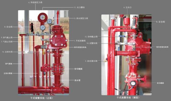 干式報(bào)警閥是干式自動(dòng)噴水滅火系統(tǒng)的重要組成部分,它是系統(tǒng)控制閥,用于接通或切斷供水,輸出報(bào)警水流。平時(shí)處于常閉狀態(tài),失火時(shí)自動(dòng)開啟。