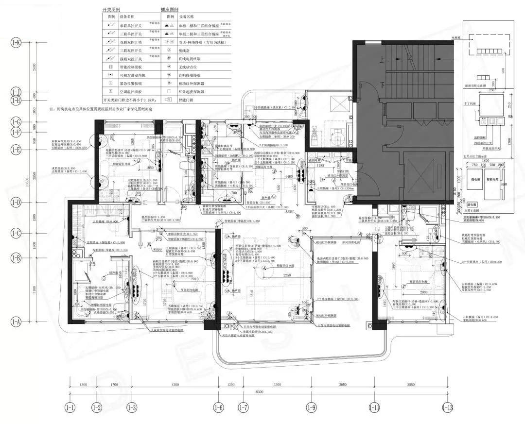前面大家知道了裝飾設(shè)計(jì)方是不具備出具電氣圖紙資質(zhì)的,所以在將機(jī)電圖紙點(diǎn)位疊加成裝飾施工的機(jī)電點(diǎn)位圖時(shí),要反復(fù)核查設(shè)備表、標(biāo)注說(shuō)明、尺寸定位、高度標(biāo)注是否明確等。