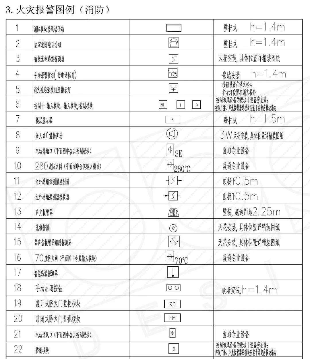 消防電氣圖紙?jiān)O(shè)備部分圖例