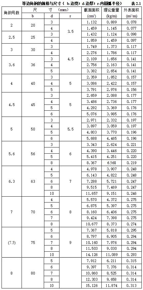 等邊角鋼的通常長(zhǎng)度:2~4號(hào)長(zhǎng)3~9m;5~8號(hào)長(zhǎng)4~12m。