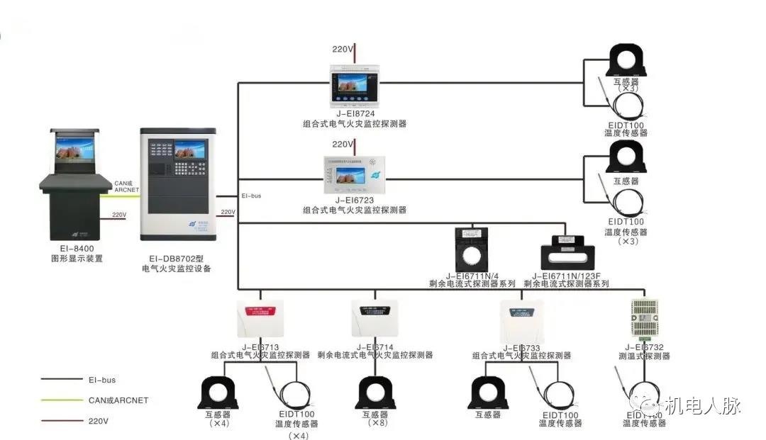電氣火災(zāi)監(jiān)控系統(tǒng)作為火災(zāi)報(bào)警系統(tǒng)的一個(gè)預(yù)警系統(tǒng),一般系統(tǒng)組成中包括了電氣火災(zāi)監(jiān)控設(shè)備、剩余電流式探測(cè)器(電流互感器)、測(cè)溫式探測(cè)器(傳感器),組合式探測(cè)器等產(chǎn)品。