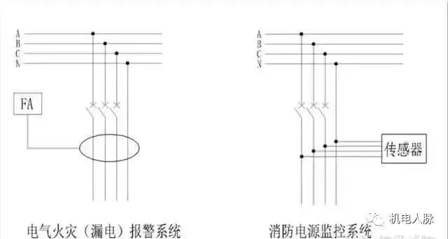 下圖可以看出電氣火災(zāi)監(jiān)控系統(tǒng)(左)以及消防設(shè)備電源監(jiān)控系統(tǒng)的檢測(cè)方式(右)