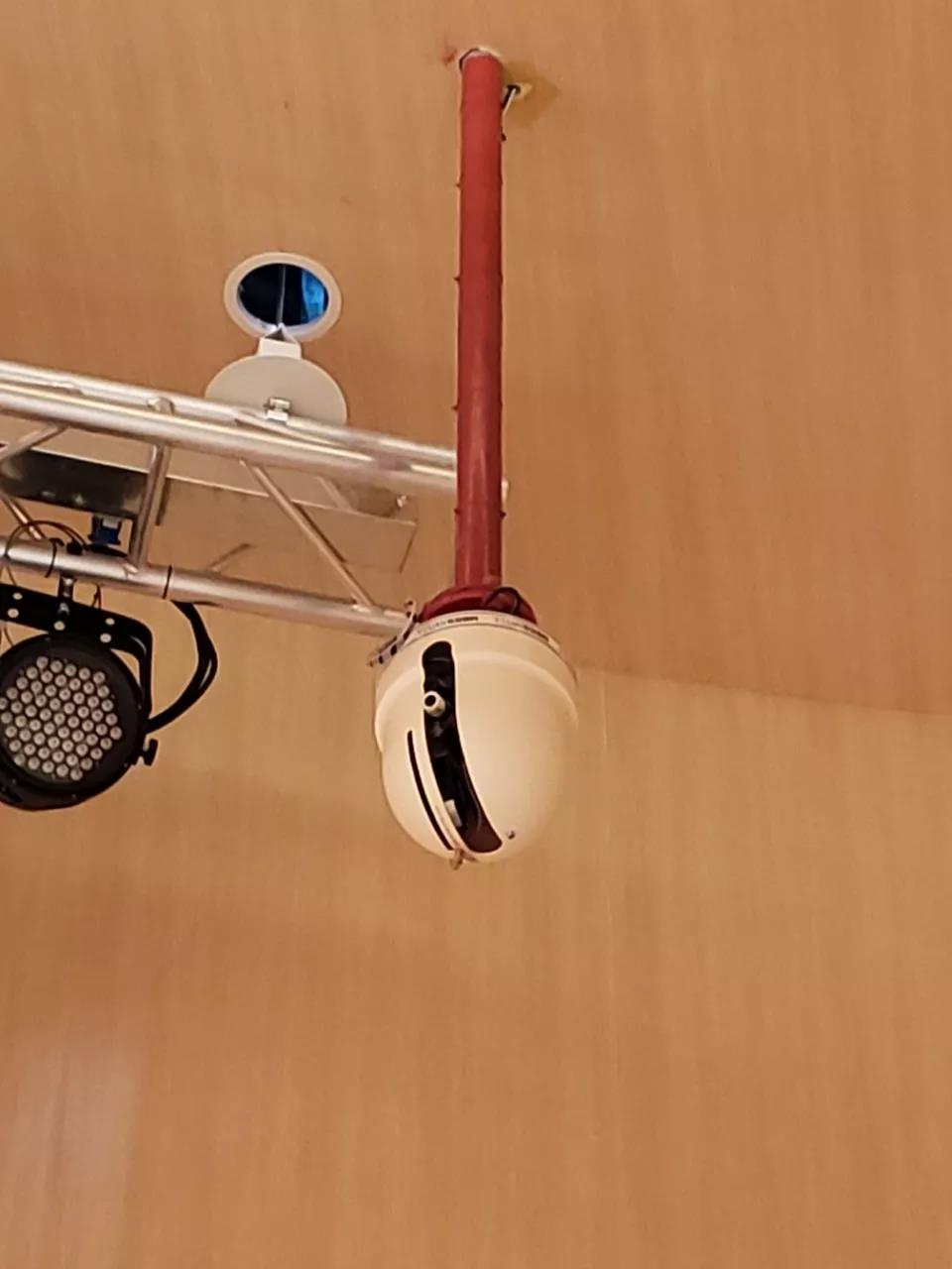 由于建筑消防技術(shù)規(guī)范的修訂升級,現(xiàn)在大劇院和音樂廳觀眾廳、舞臺、大堂這些凈空較高、不宜采用其它自動滅火設(shè)備的區(qū)域,必須安裝自動消防水炮。它長得如下圖所示。