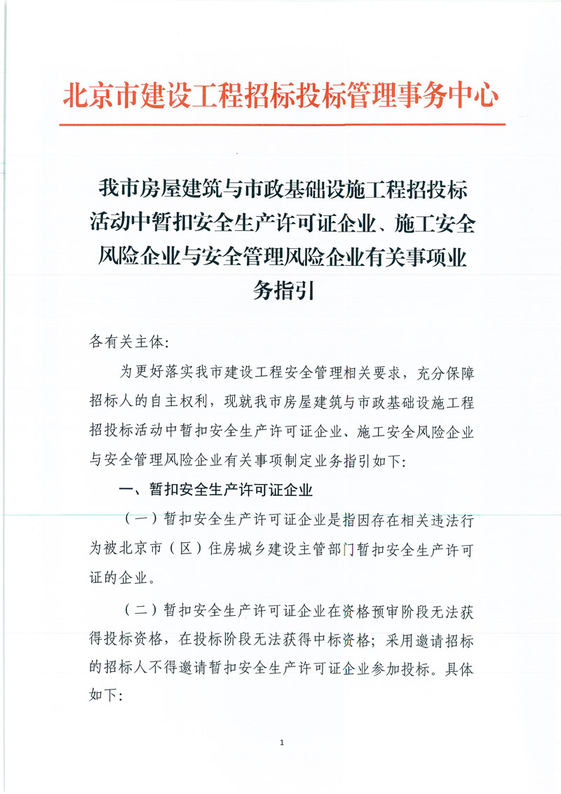 當(dāng)前位置: 主頁(yè) > 新聞中心 > 行業(yè)動(dòng)態(tài) >我市房屋建筑與市政基礎(chǔ)設(shè)施工程招投標(biāo)活動(dòng)中暫扣安全生產(chǎn)許可證企業(yè)、施工安全風(fēng)險(xiǎn)企業(yè)