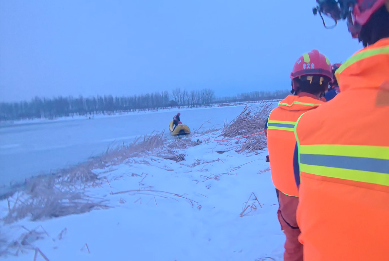 “被困男子站在一艘小船上,人沒(méi)有大礙,但他已經(jīng)被困一個(gè)多小時(shí)了。當(dāng)時(shí)氣溫接近零下十?dāng)z氏度,在北風(fēng)勁吹的空曠河面之上,人會(huì)感覺(jué)更冷。救人要緊,我們立即著手救援。”參與救援的消防員祁興龍說(shuō)。