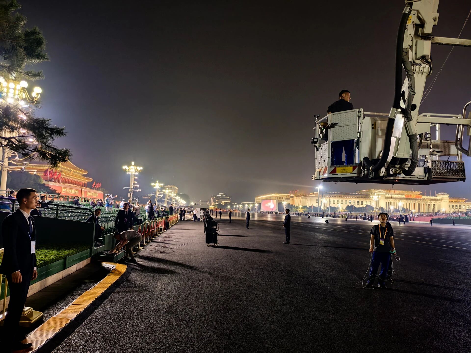 “我們的點位在中山公園南門前,不僅車身距離閱兵方隊‘零距離’,升空后的工作斗就在長安街上空,點位極為重要。”賈孝龍說,在前三次演練中,他們按照新華社記者的要求,不斷調(diào)整云梯車旋轉(zhuǎn)與伸展的角度,只為盡可能靠近長安街中線,確保最完美的拍攝效果。