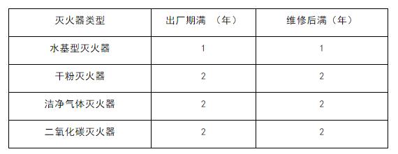 4.3.2滅火器維護(hù)、檢修期限應(yīng)符合表1的規(guī)定。